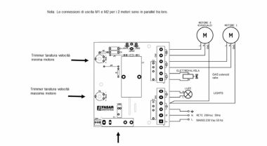 N.B. Tutti i regolatori a triac possono causare, alle basse velocità, ronzio elettrico nel motore. È sconsigliato ridurre oltre il 50% la velocità nominale nel motore elettrico.
